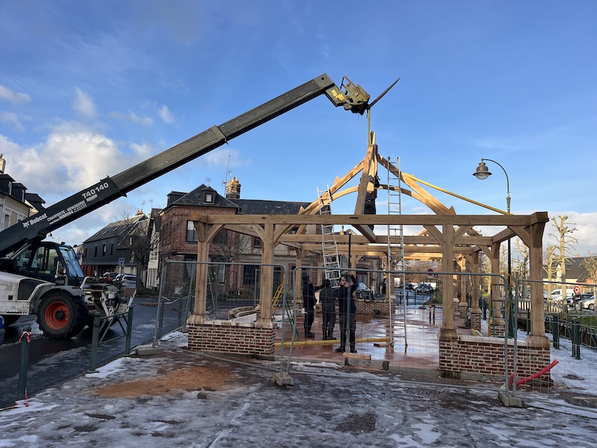 Dans quelques semaines, ce sera alors la pose de la toiture en zinc avec une pente à 40% avant que ne viennent s’installer les premiers commerçants du marché communal.